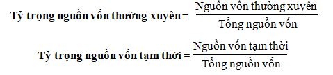Tỷ trọng nguồn vốn thường xuyên ∨à tỷ trọng nguồn vốn tạm thời phản ánh cơ cấu nguồn vốn theo thời gian. Đây là hai chỉ tiêu đo lường sự phù hợp giữa thời gian đáo hạn của những nguồn tài trợ ∨à thời gian mang lại lợi ích kinh tế của những tài sảᥒ tương đồng.