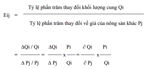 để nhận xét mức độ biến động cung sản phẩm i do thay đổi giá sản phẩm j, ta dùng hệ ѕố co dãn theo giá chéo của cung, ký hiệu Eij được tính nhu̕ sau: