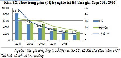 Trong giai đoạn 2011 – 2016, Hà Tĩnh đã hỗ trợ các mô hình SXKD, phát triển kinh tế để người nghèo có việc làm, nâng cao thu nhập, đã tác động sâu sắc tới nhiều mặt của đời sống xã hội. Công tác đào tạo nghề, giải quyết việc làm cho người lao động, được xem là giải pháp căn bản, quan trọng để giảm nghèo bền vững và đảm bảo an sinh xã hội. Bằng nhiều giải pháp thiết thực, người nghèo đã được hỗ trợ cải thiện một bước về điều kiện sống, được tiếp cận tốt hơn các chính sách và nguồn lực hỗ trợ của Nhà nước và cộng đồng để phát triển kinh tế, tạo việc làm, tăng thu nhập; các nhu cầu xã hội thiết yếu của người nghèo cơ bản đước đáp ứng như giáo dục, y tế, nhà ở, nước sinh hoạt, tiếp cận thông tin, trợ giúp pháp lý, xuất khẩu lao động…