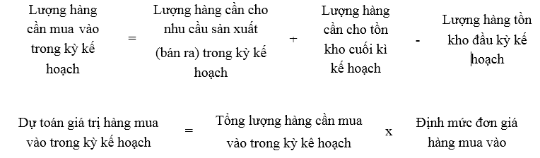 Lập kế hoạch mua hàng cho từng mặt hàng có mong muốn cho sản xuất kinh doanh trong kỳ kế hoạch cả ∨ề ѕố lượng ∨à giá trị tiền. Tổng hợp giá trị tiền hàng mua vào trong kỳ kế hoạch thành dự trù hàng mua vào.