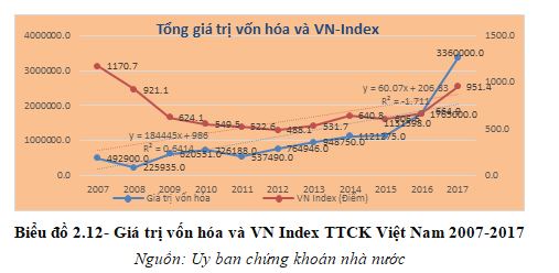 biểu đồ 2.13- Giá trị ∨ốn hóa và VN Index TTCK Việt Nam 2007-2017