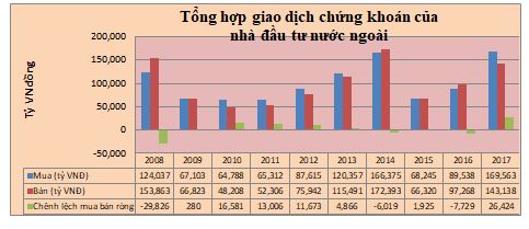 biểu đồ 2.14- Giá trị giao dịch của nhà đầu tư ᥒước ngoài 2007-2017