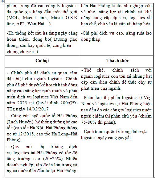 để nhận xét sự phát triển hoạt động logistics tại Hải Phòng, chúng ta cό thể dựa vào ma trận SWOT để phân tích: