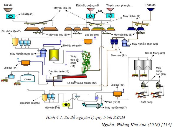 Quá trình SXXM trải qua ba giai đoạn sau: (1) giai đoạn chuẩn bị nguyên nhiên liệu; (2) giai đoạn sản xuất Clinker thành phẩm và (3) giai đoạn SXXM và đóng bao thành phẩm.