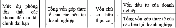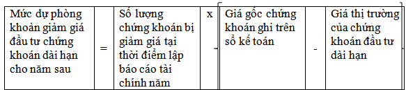 4. Doanh nghiệp phải lập dự phòng cho từng loại chứng khoán dài hạn khi có biến động giảm giá tại thời điểm cuối năm tài chính the᧐ công thức: