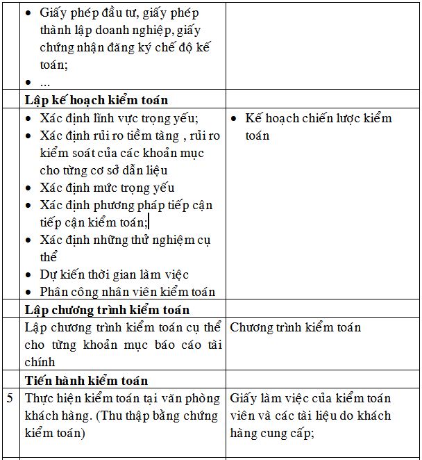 Tóm tắt quy trình kiểm toán21/04/2024 by pth Để lại bình luận Bình chọn bài nàyLiên QuanChuẩn mực kiểm toán số 315Các quan điểm về tổ chức kế toán chi phí sản xuất và tính giá thành sản phẩm trong các doanh nghiệpChuẩn mực kiểm toán số 260Chuẩn mực kiểm toán số 580Tiềm năng phát triển hàng TCMN mây tre lá của Việt NamCác hành vi nghiêm cấm đối với kiểm toán viên hành nghềChuẩn mực kiểm toán số 610Chuẩn mực kiểm toán số 710Chuẩn Mực Số 910 – Công Tác Soát Xét BctcChuẩn mực kiểm toán số 540