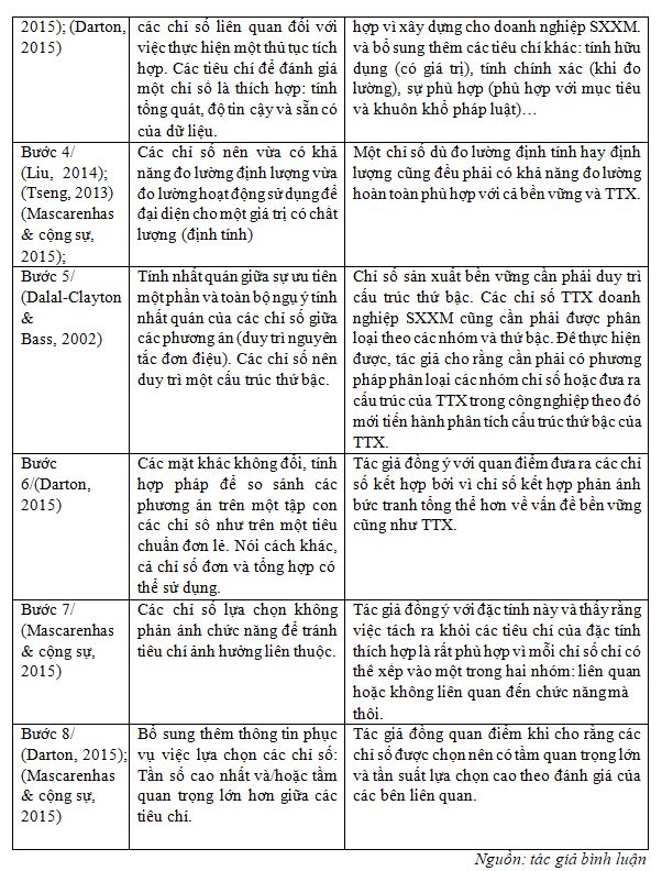 Về nguồn dữ liệu: nguồn dữ liệu nghiên cứu đưa ra hoàn toàn phù hợp với sản xuất bền vững. Tuy nhiên, với mục tiêu xây dựng bộ tiêu chí đánh giá TTX cho doanh nghiệp SXXM thì tác giả chỉ có thể sử dụng một phần nguồn dữ liệu này và phải xác định các nguồn dữ liệu khác phù hợp với mục tiêu này.