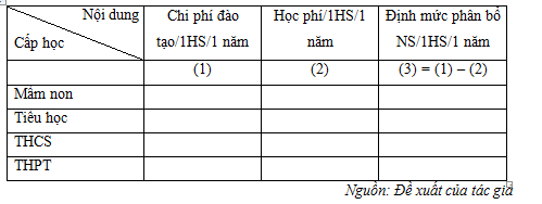 Một là, lựa chọn học sinh làm đối tượng xây dựng định mức phân bổ dự toán NSNN chi thường xuyên cho sự nghiệp giáo dục.